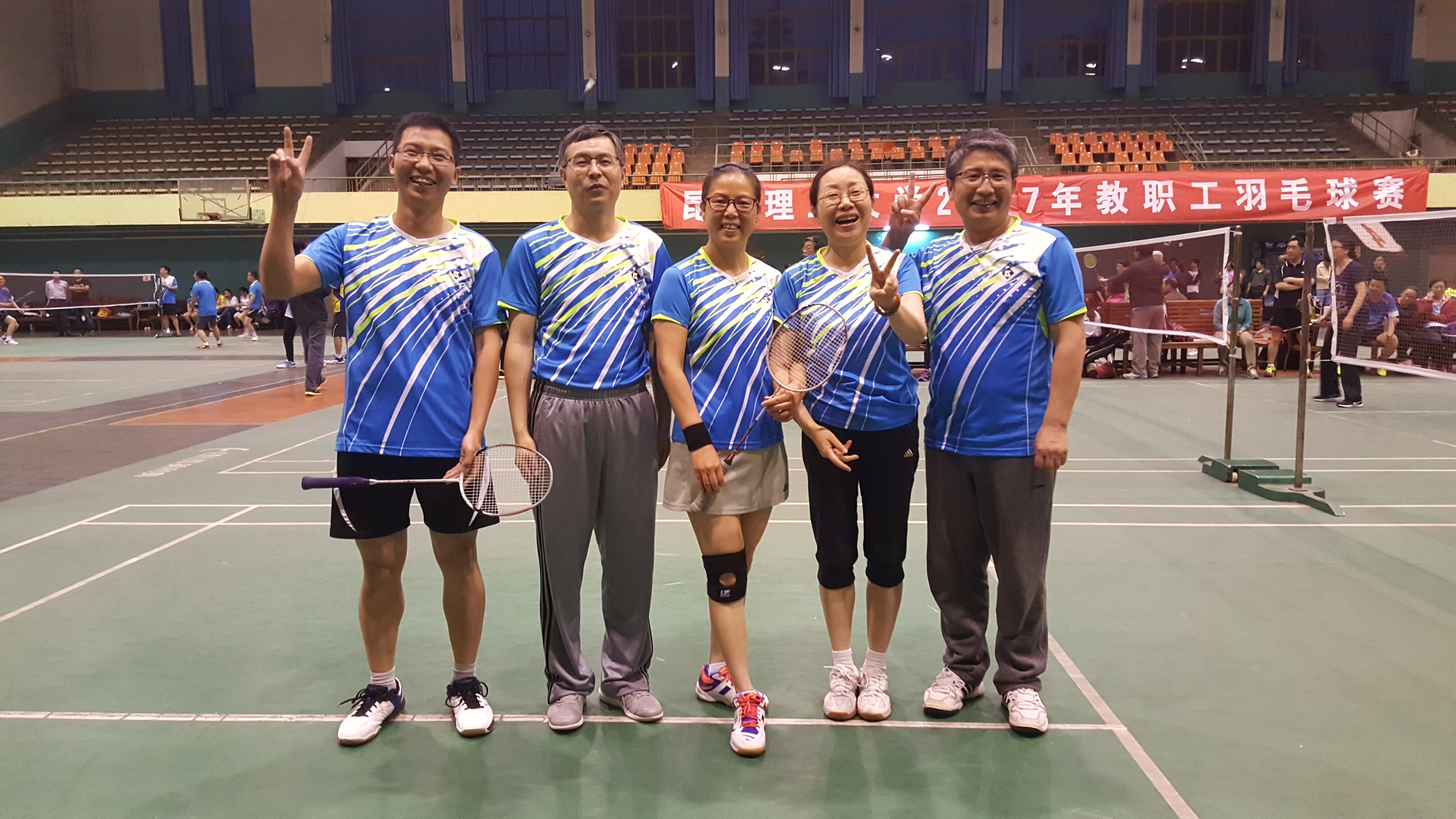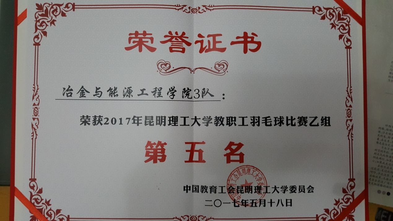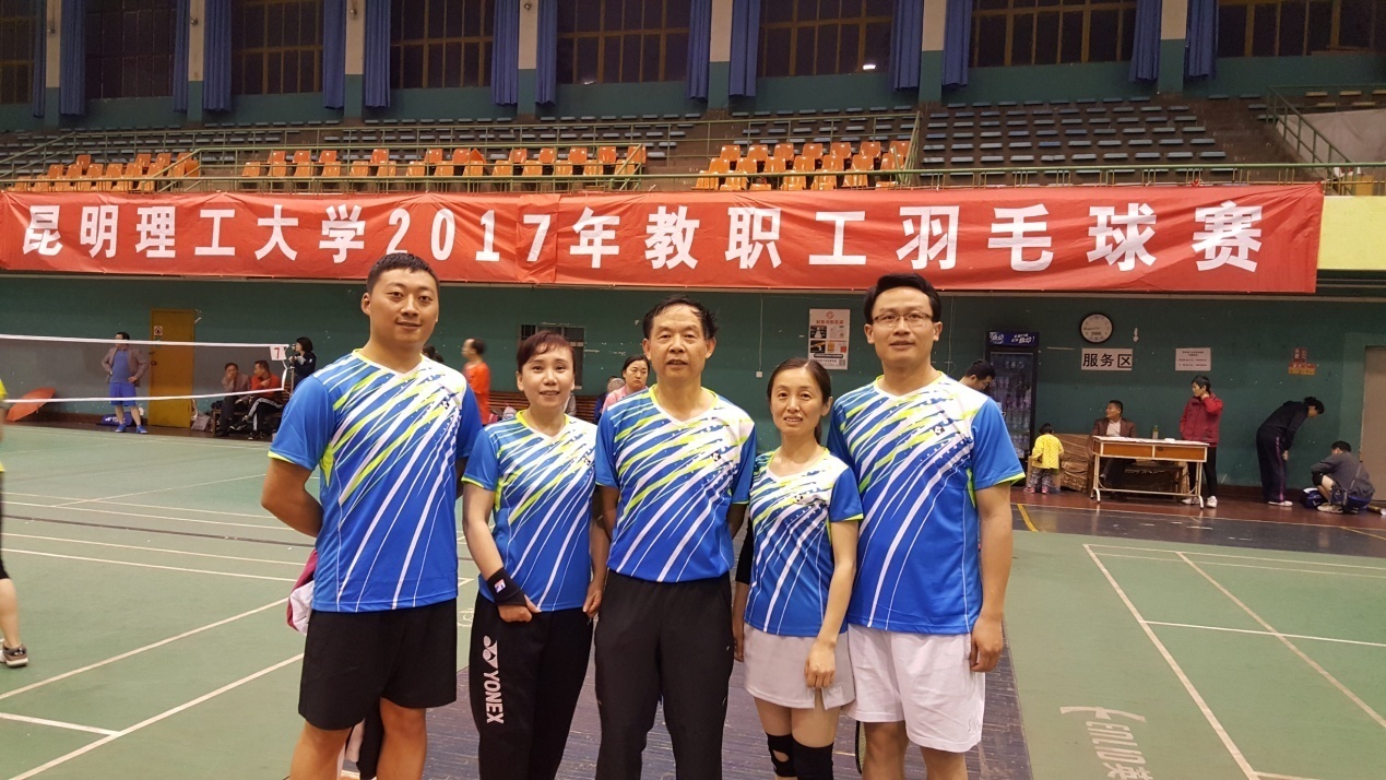 5月15日,我校迎来了昆工参赛人数最多的球类赛事------2017年教职工羽毛球比赛。本次比赛由一个月前开始报名组队、组织训练、购买比赛服……h动画 组队5 个,共计28人参赛,各位老师在百忙中积极训练,比赛中奋勇拼博。最终三个队小组出线,两个队分别进入甲、乙组八强,均获得了各组第五名的好成绩。成绩喜人,队员们进步也很大,然相比其它学院差距仍是不小。希望大家为了自己的健康,也为了学院的荣誉,抽出时间加强锻炼。各位辛苦了!我们明年再来!