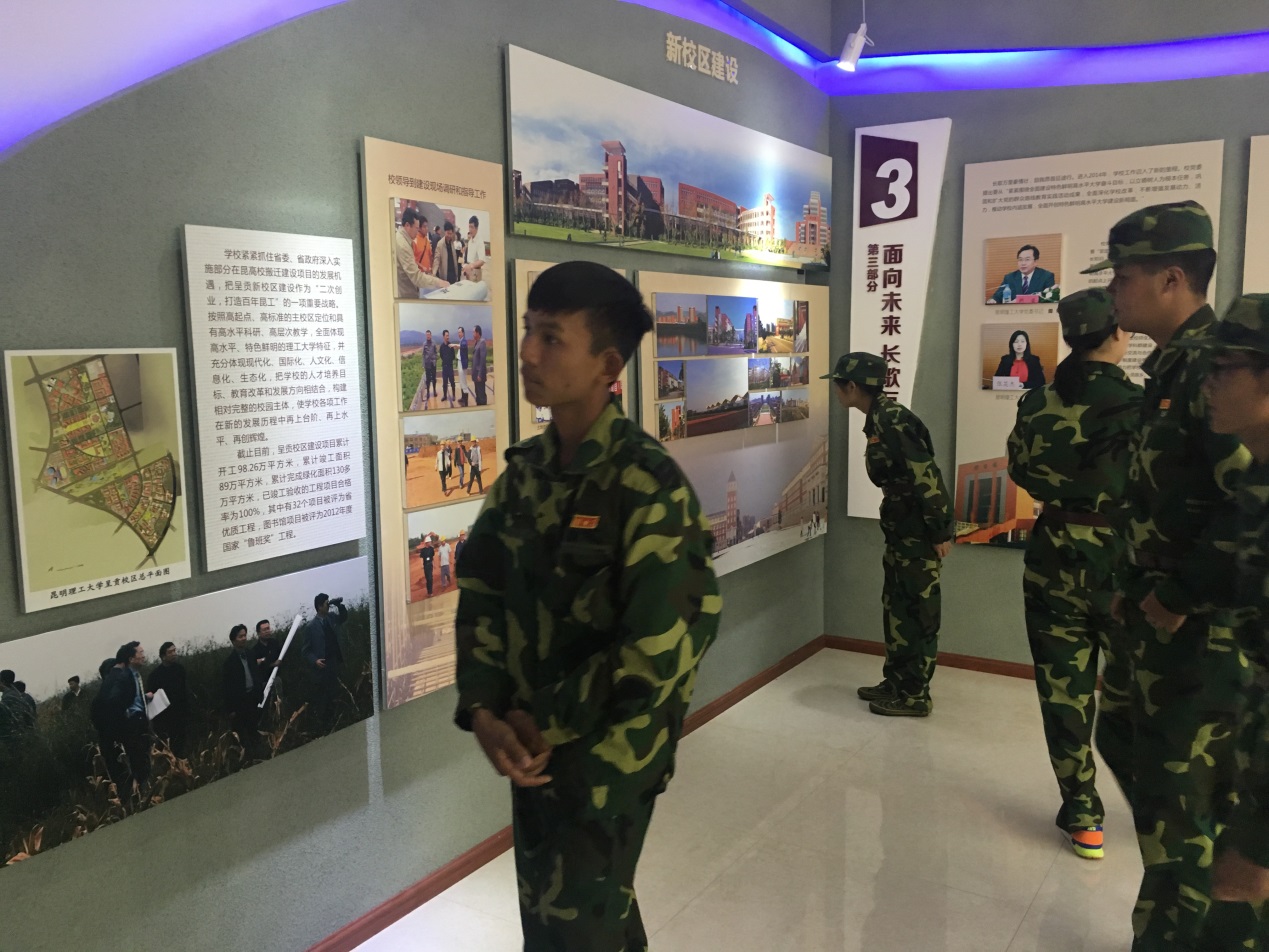 新生们在进入校史馆后仔细阅读了陈列于墙壁上的校史历程以及对学校作出巨大贡献的前辈老师的介绍。校史馆的负责人播放了h动画
