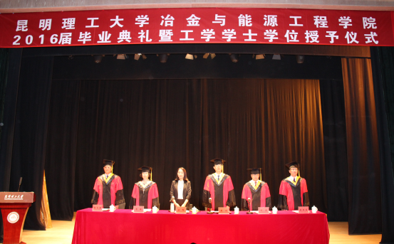 2016年6月17日上午10点,冶能学院2016届毕业生毕业典礼暨工学学士学位授予仪式在莲华校区伍集成会堂二楼演讲厅举行。学院党委书记樊刚教授、党委副书记刘辉老师、副院长何屏教授、副院长李瑛副教授、副院长徐瑞东教授、冶金系主任谢克强教授出席了毕业典礼,并为获得工学学士学位同学授予学位。学院党委副书记刘辉老师主持典礼暨仪式。