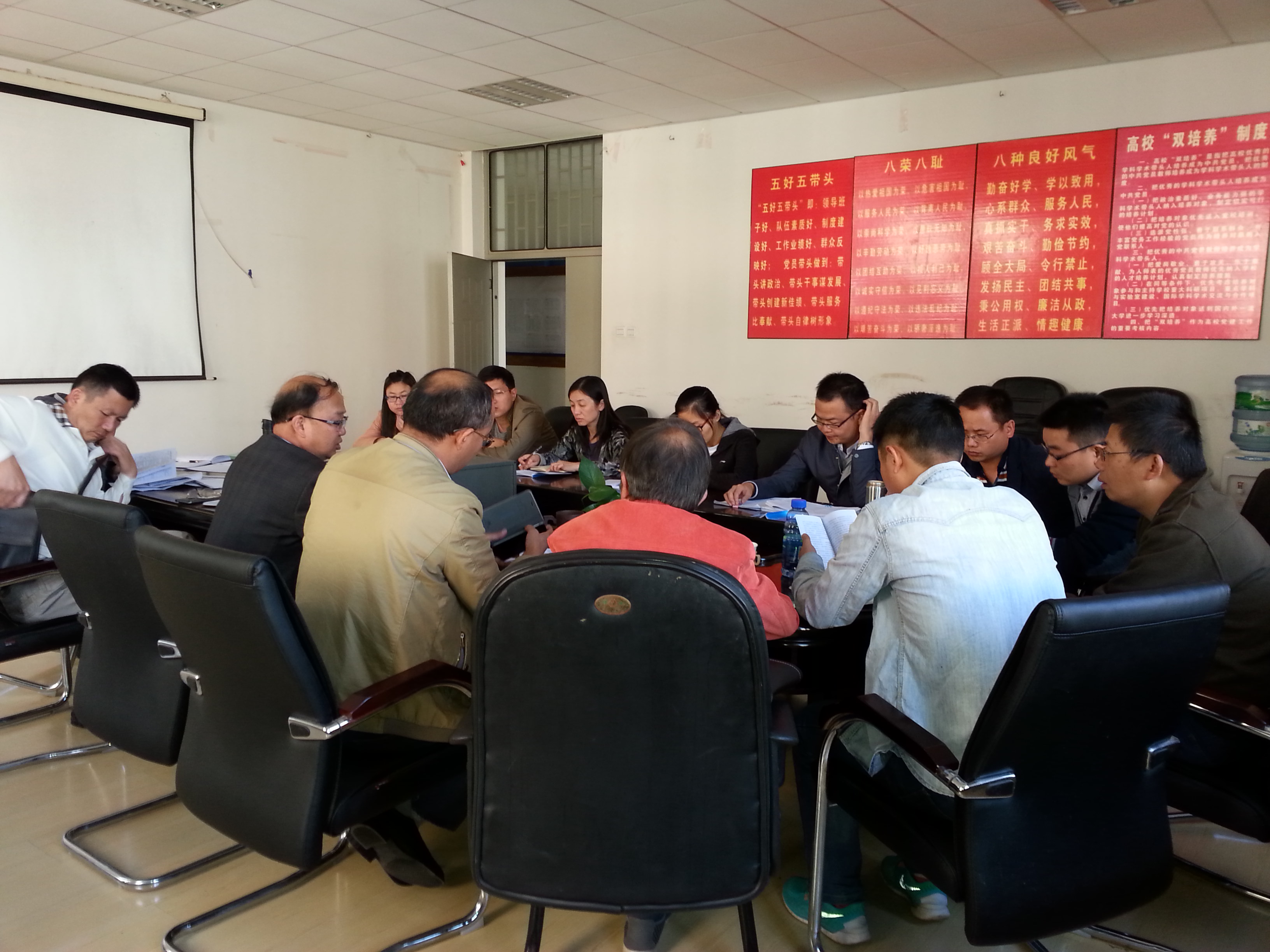 2015年10月27日下午,冶能学院在院会议室召开第四次本科教学审核性评估工作会。校督导普靖中老师、学院评建办工作组成员等16人参加了会议,会议由何屏副院长主持。