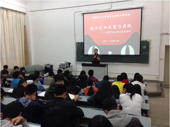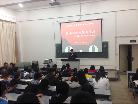 在莲华校区基础楼200举办了“毕业生就业创业政策与实践”主题讲座。本次讲座是学校2015年“就业创业政策讲坛”的重要组成部分,由院学工办主任于志强老师和学院校友、创业典型代表谷越主讲,学院2016届本科毕业生参加了本次讲座。