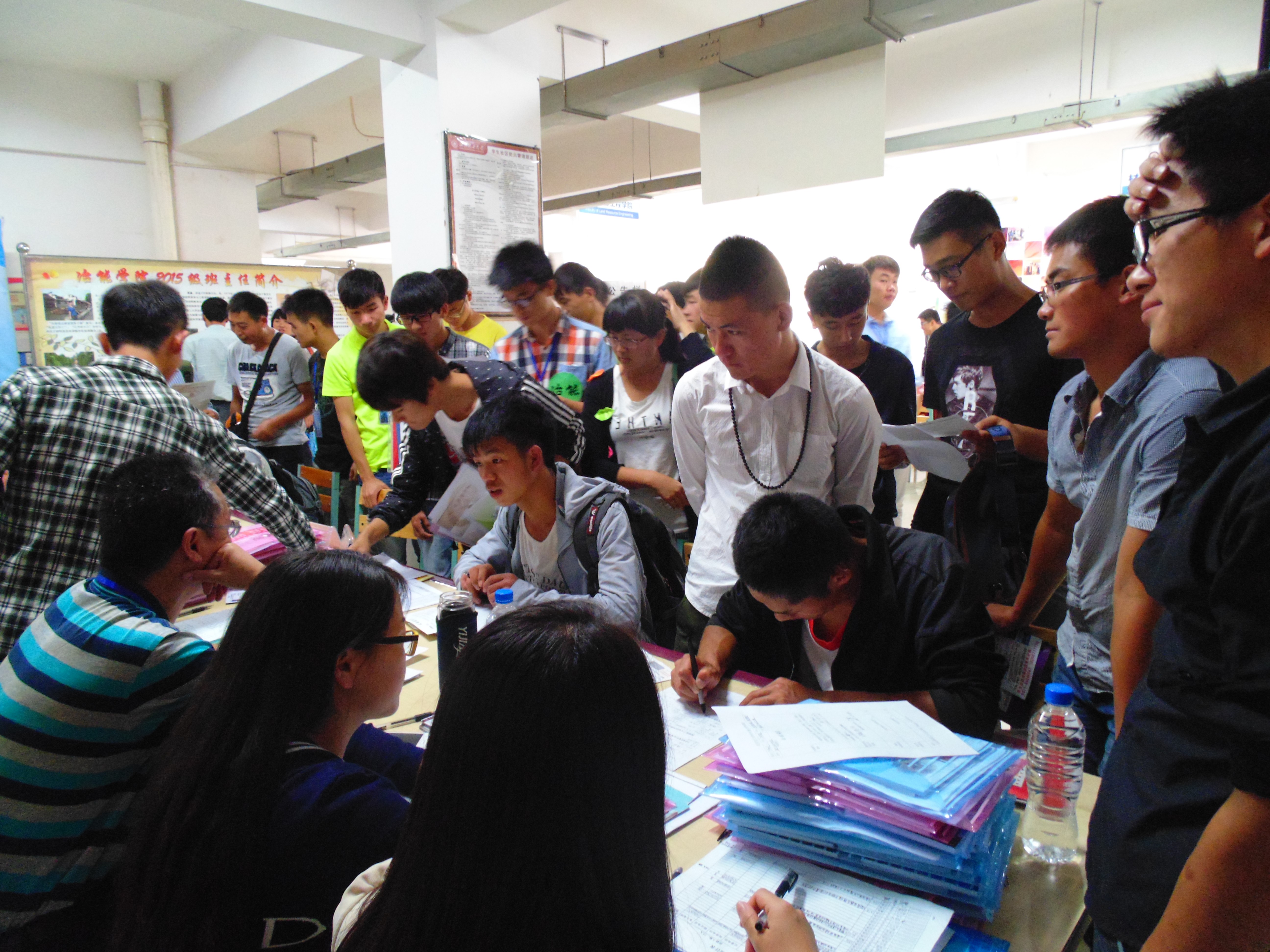 阴雨连绵,难敌新生求学渴望;默默奉献,方显志愿者无私与真诚。2015年8月23日至25日,由学院党委副书记刘辉老师担任组长,学工办主任于志强老师、院团委书记令狐欢欢老师以及2015级新生班主任、学院辅导员组成的迎新工作组,在学校呈贡校区憬园4栋大厅内,顺利完成了新生接待、报到工作。