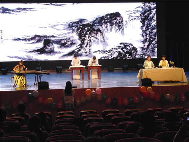活动开始前,首先进行了本次活动的嘉宾和全校各家社团的入场仪式。冶能学院青年志愿者协会和翰林社、科技协会、心语协会、红魂青年社从T毯上自信走过,在工作人员的指引下在“社响杯”的活动展板上签下各自组织和社团的名字。进入会堂就坐,表彰大会在我校社团的风采展示和主持人热情洋溢的开场词中正式拉开序幕。此次表彰大会各类别奖项的开奖嘉宾由各家学院的社团管理部主席或学校部分社团的负责人担任;表彰过程还穿插了我校优秀社团精心准备的节目表演,活动现场充满了欢乐。冶能学院翰林社参与表演的节目《国韵》,展现了中华传统书法、音乐、茶道文化的魅力,得到了现场师生的热烈掌声。最终,冶能学院团委科技协会在2014年度“社响杯”优秀学生社团、优秀学生干部表彰大会中获得了“学术科技类标兵社团”的荣誉称号,其协会会长董小龙同学和翰林社社长张昀同学同时被评为h动画