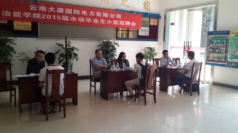 在冶能学院一楼大厅举办能源与动力专业(水方向)毕业生小型招聘会。云南大唐国际的红河发电公司、那兰水电公司、李仙江水电公司、文山水电公司来h动画