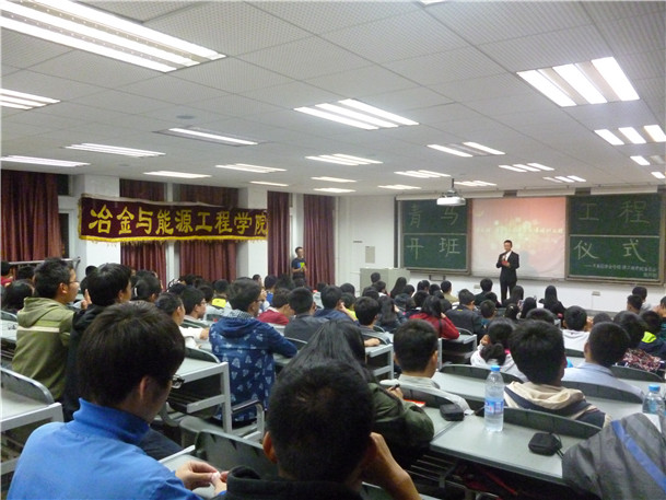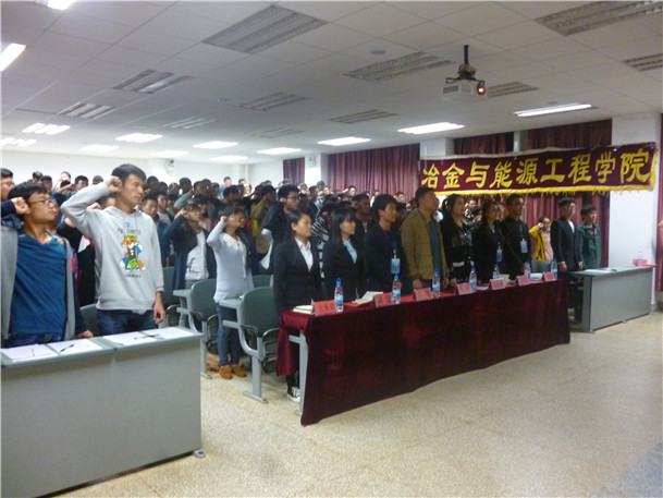在高亢激昂的国歌声中,“青马工程”的开班仪式就此拉开了帷幕。赵晋阳老师作为嘉宾围绕“青马工程”这一主题致辞,随后第五期“青马工程”学员代表带领本期“青马工程”所有学员宣誓。紧接着,冶能学院团委组织部部长王翔宇同学通过PPT为在场师生介绍了“青马工程”开展的背景、意义、活动纪律及青马成员分组情况,并回顾往期“青马工程”的活动内容。不管是第四期青马代表——吴壮同学的发言,还是《百年潮·中国梦》的观影,都无不围绕着“民族精神”“时代精神”“中国精神”这些具有中国特色的词汇而展开。这些充满正能量的词汇在整个开班仪式两个小时里一次又一次撞击着青马学员的内心,引领着他们的精神世界不断延伸,激发了他们对中国梦的思考。从在场青马学员全神贯注的神情中我们感受到了冶能学子作为一名中国人的自豪与自信;也相信本期青马学员们在这次开班仪式中感受到了自己肩上所挑着的沉甸甸的责任。