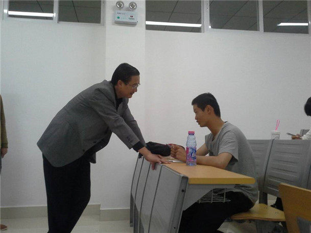 结束了寝室之行,冶能学院领导们又来到了公教楼,了解学院2014级学生上晚自习的情况。安静的教室,浓厚的学习氛围,专注的神情,沙沙的写字声……为冶能学院的这个夜晚增添了一抹温暖的色彩。
