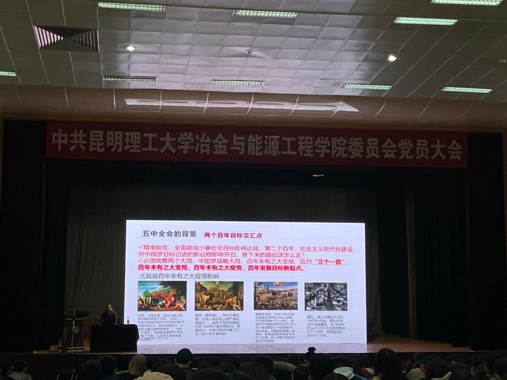 接着,刘智国院长引入习近平总书记考察云南时提出的“一个跨越,三个定位,五个着力点”,提出我们要正确认识和把握云南在全国发展大局中的地位和作用,充分发挥高校作用,为我国新目标新任务的实现添砖加瓦。最后,刘智国院长强调,要实现我国发展新目标,全体党员必须始终坚持党的全面领导、坚持以人民为中心、坚持新发展理念、坚持深化改革开放、坚持系统理念五大工作原则,始终相信党、跟党走、为党奉献。