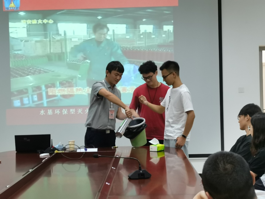 活动中,赵教官为师生进行了消防安全教育培训,师生们在工作人员的指导下现场学习了灭火器的使用,并组织师生进行了“模拟火情”逃生演练。