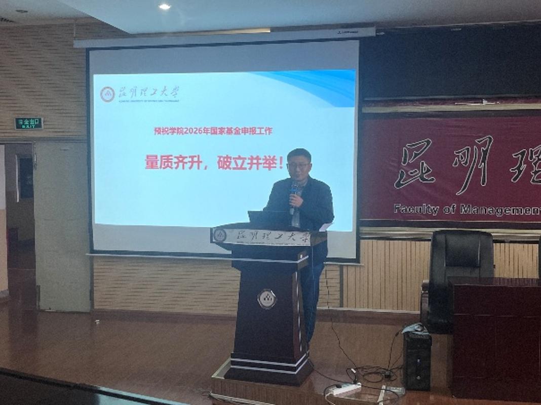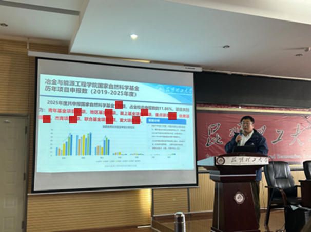 于2025年10月29日下午3点在莲华校区冶能楼(原管经楼)502召开了2025年国家自然科学基金项目申报总结会暨2026年度国家自然科学基金项目申报动员大会。