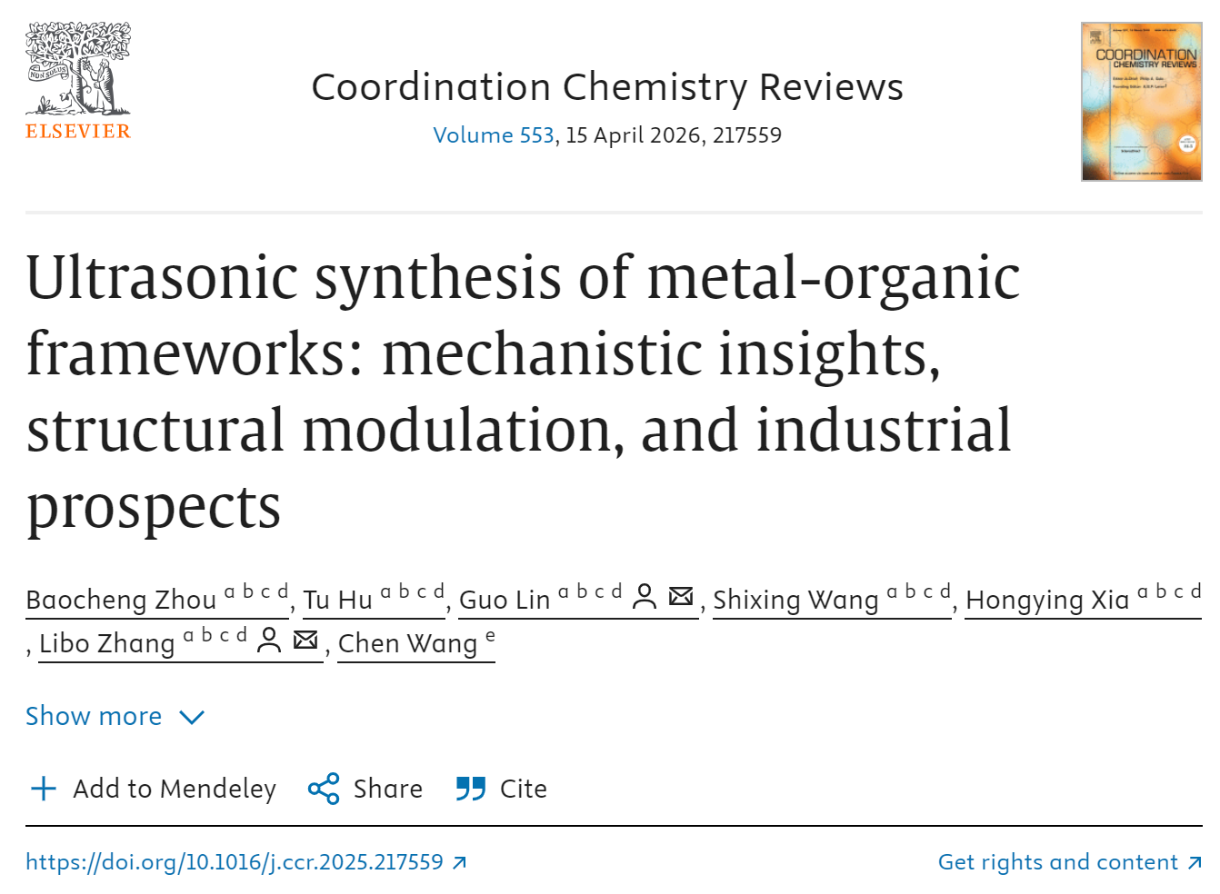 该研究构建了从“机理—结构—性能—应用”贯穿的研究框架,为超声波合成MOFs的基础研究与实际应用搭建了桥梁。通过系统阐述超声波技术作为MOFs材料工业化制备的可行路径,本文为面向应用的高性能MOFs理性设计与绿色制造提供了有益参考与支撑。
