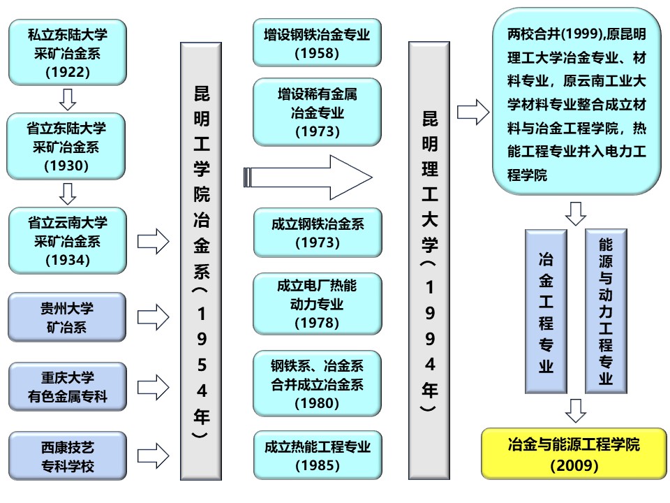 学院拥有国家级特色专业、省级重点专业及品牌专业;实施国家卓越工程师培养计划、国家留学基金委优秀本科生国际交流项目;拥有全国高校黄大年式“冶金工程教师团队”、国家级课程教学团队及省级专业教学团队,国家级虚拟仿真实验教学示范中心、实验教学示范中心、工程实践教育中心和教育部能源动力类新工科建设改革虚拟教研室,以及云南省创新人才示范基地、双层次人才培养模式创新实验区;拥有国家级及省级精品课程、精品资源共享课程,以及云南省教学名师工作室等各类教育教学资源。形成了真空冶金、非常规冶金、冶金过程强化与节能减排、新能源材料与制备及资源综合利用、湿法冶金新技术、清洁燃烧与工业炉窑热工特色鲜明的研究方向。拥有教育部创新团队1个、科技部重点领域创新团队2个 、云南省创新团队7个、地厅级创新团队3个、校级创新团队11个、校级学科方向团队10个;拥有省部共建国家重点实验室、国家工程实验室、国家地方联合工程实验室、教育部重点实验室、教育部工程研究中心、国际科技合作基地(国际合作研究室)、科技部“冶金与能源产业融合发展创新引智基地(111引智基地)”、工信部“绿色低碳发展校企协同就业创业创新示范实践基地”等30余个国家级及省部级科研创新平台,科研用房面积3万余平方米,仪器设备价值8000余万元。